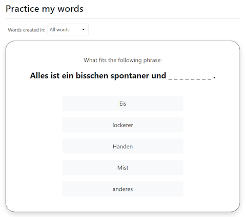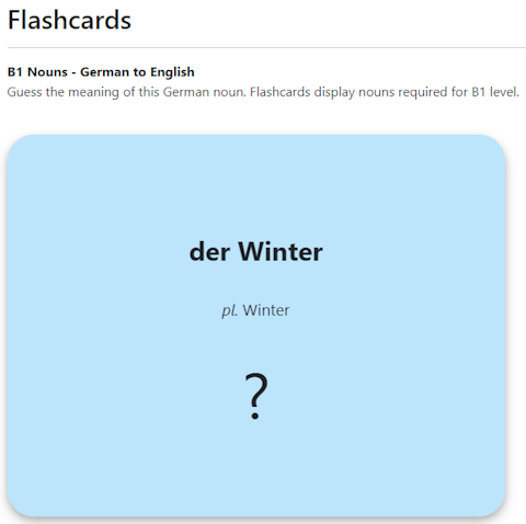 Use flashcards to quickly memorize German words. These cards are like your familiar Anki cards, but a little bit different.
